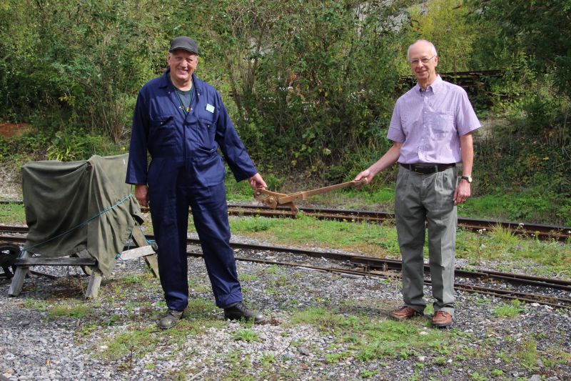 John Stanton (left) accepts the missing expansion link from Peter Heather at the Museum. Social distancing was observed during this manoeuvre.