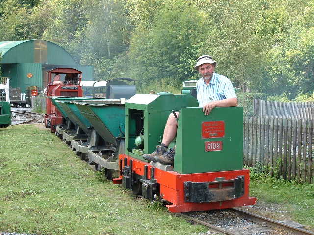 Industrial trains were interspersed into the passenger service - Redland (OK6193) leads a line of skip wagons having just arrived off the main line from Amberley. The Ransomes & Rapier brings up the rear.