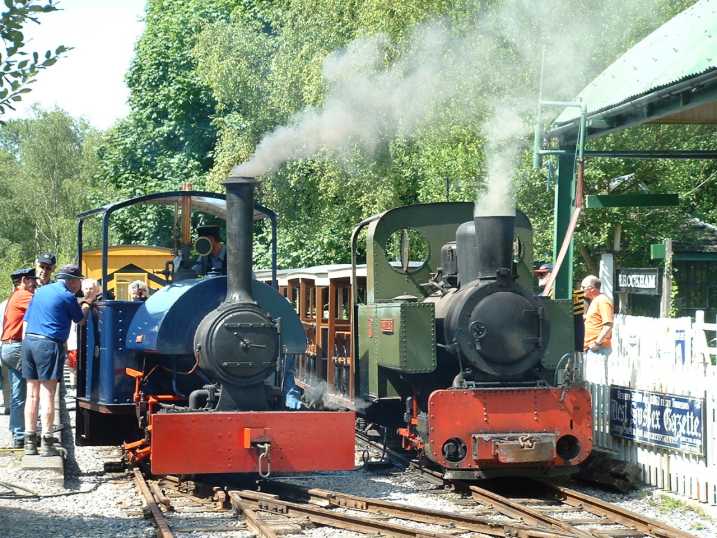 While all this was going on, operatons continued. The camera caught Wendy and the French Connection, Barbouilleur, at Brockham. Behind can be seen the Groudle Glen train about to depart.