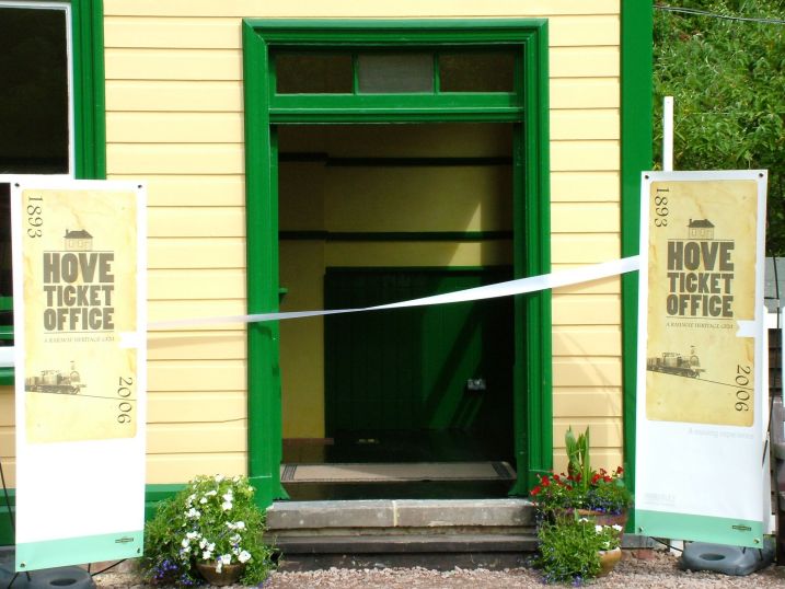 John Foxley cuts the ribbon to officially open the Hove Ticket Office as another fine addition to the scene at Amberley. The first occasion on which it proved extremely useful as additional exhibition space was at Railway Gala Weekend in July.