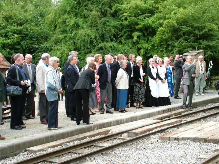 The great and the good (plus a few railway volunteers!) - looking just as smart, gathered on the opposite platform.