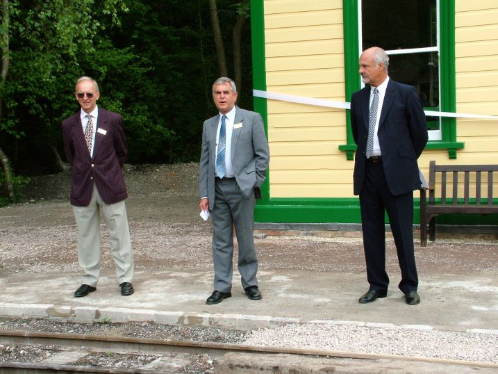 Howard Stenning, the Museum Director (centre), outlines the history of the building and the story of its acquisition by and reconstruction at Amberley. On his left is Keith Ludeman, Chief Executive of Govia, with John Foxley, now Chairman of Trustees at Amberley on his right.