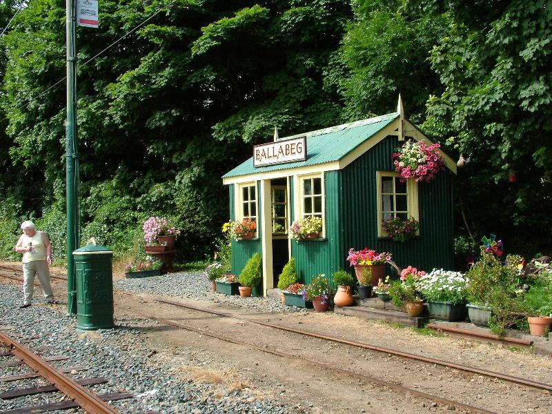 | The tram stop and shelter at Ballabeg is carefully tended and nurtured by the residents of the adjacent property. The track through here, at least on the northbound line, has yet to be relaid. | |