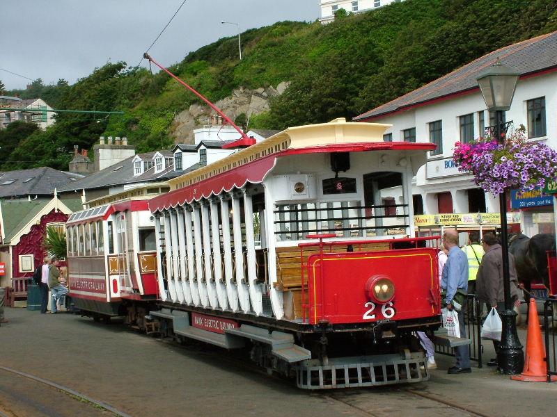 Another view of 26 and 56 in the Derby Castle lay-by siding. Horse trams in the background and floral displays abound.