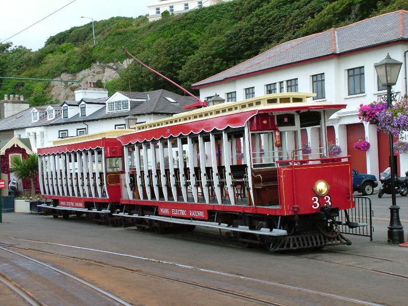 Car 33 again at Derby Castle. The white building with red doors in the background is the horse car sheds.