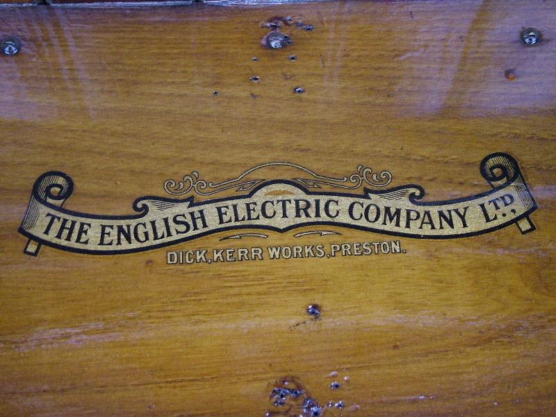 English Electric scroll on the bulkhead of one of the trailer cars.