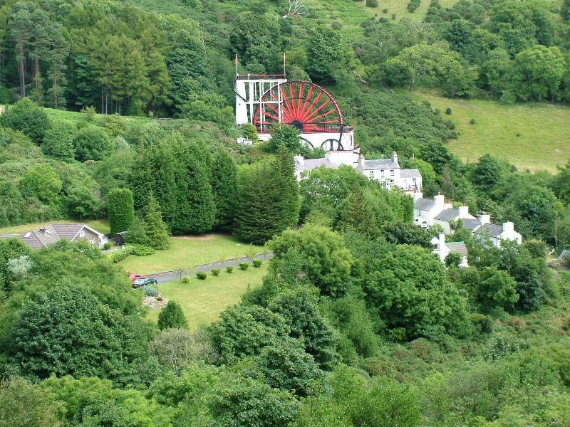 The Laxey Wheel - seen from the Snaefell Mountain Railway which clings to the other side of the valley.