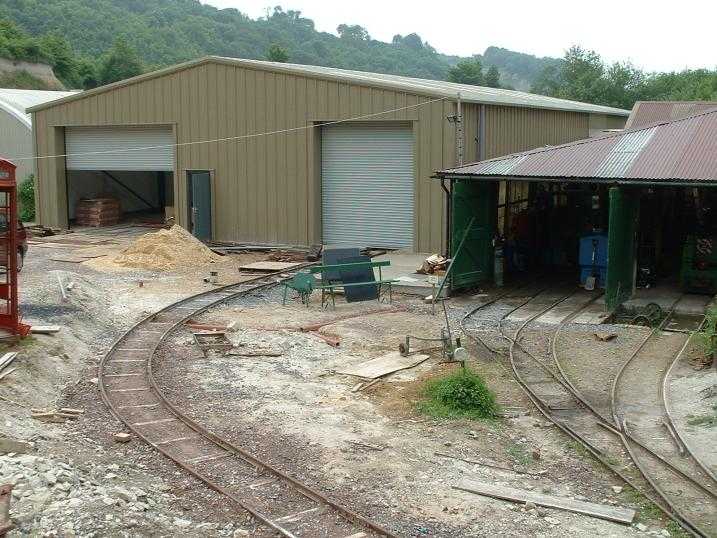 Access to one entrance to the building is being taken off existing tracks into the workshop. Late April, the track is in position but not fish-plated or ballasted ........