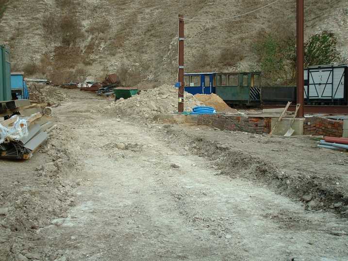 The building will cover the area from the footing in the foreground more or less up to where the JCB is standing. The back wall of the brown building on the left will have a doorway cut into it for access to the new building, incorporating a ramp for wheelchairs and pushchairs. The completion of the project is due to take place in the New Year, hopefully before the Museum opens again for the 2003 season. Track layout for the building is still not finalised.