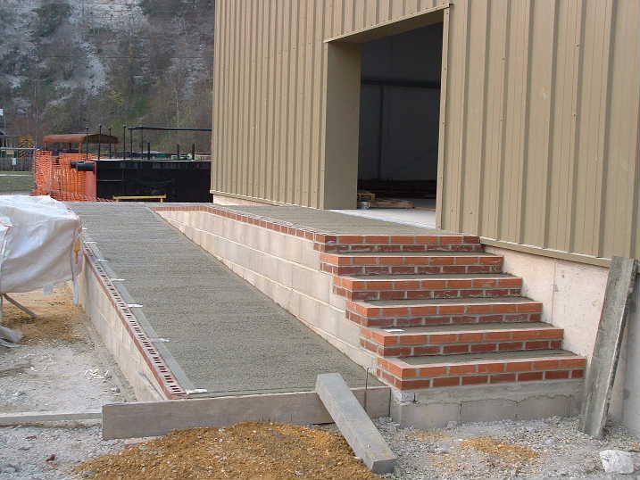 A few days later and the ramp and steps have appeared. The ground level at the bottom will be brought up to the level of the bottom of the bricks.