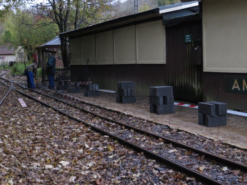 November 2013 to March 2014 Our major civil engineering task for the winter was the rebuilding and raising of the platform at Amberley Station. After we relaid the track into the station in early 2012, the platform at Amberley was too low for comfort so with a grant from the Friends of Amberley Museum, we were able to rebuild and raise it.