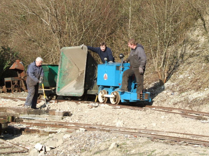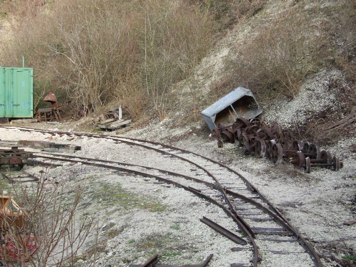 The chalk dug from Brockham Station was used to build up the shelf on which the track has been laid.