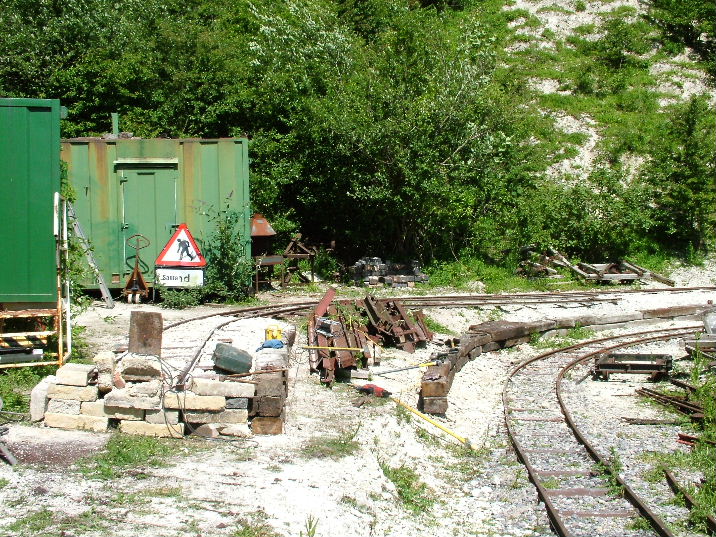 To gain the necessary height to the contaners, the line splits with a second siding keeping close under the cliff.