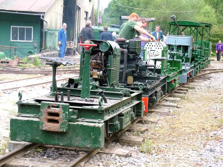 Nine visiting Lister Railtrucks landed by various means on the Amberley 2-foot tracks thanks to the supreme efforts of Graham Feldwick, from the Twyford Waterworks Trust, who did a great job enticing the owners of nine Lister Railtrucks to bring their machines to the Museum. That made a total of 11 locomotives - we think the largest number ever at one location in preservation. The list of Listers:-