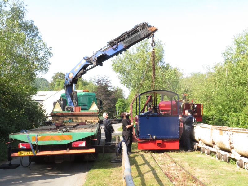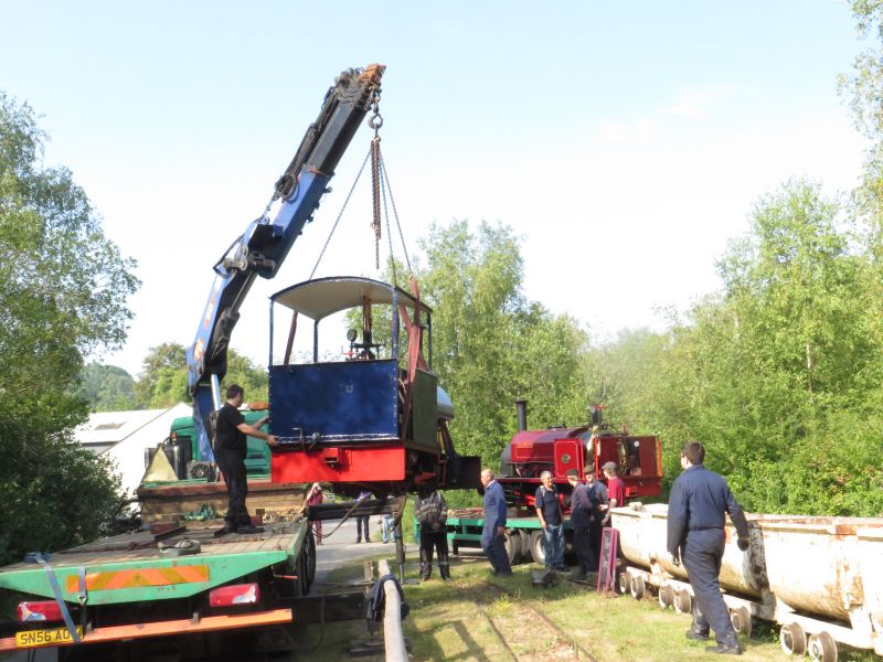 But at around 9 o'clock on Saturday when, realisticly, the needle should have been well off the pin on both locos, the lorry arrived. Wendy was lifted off the lorry while Cloister waits on the other trailer in the background.